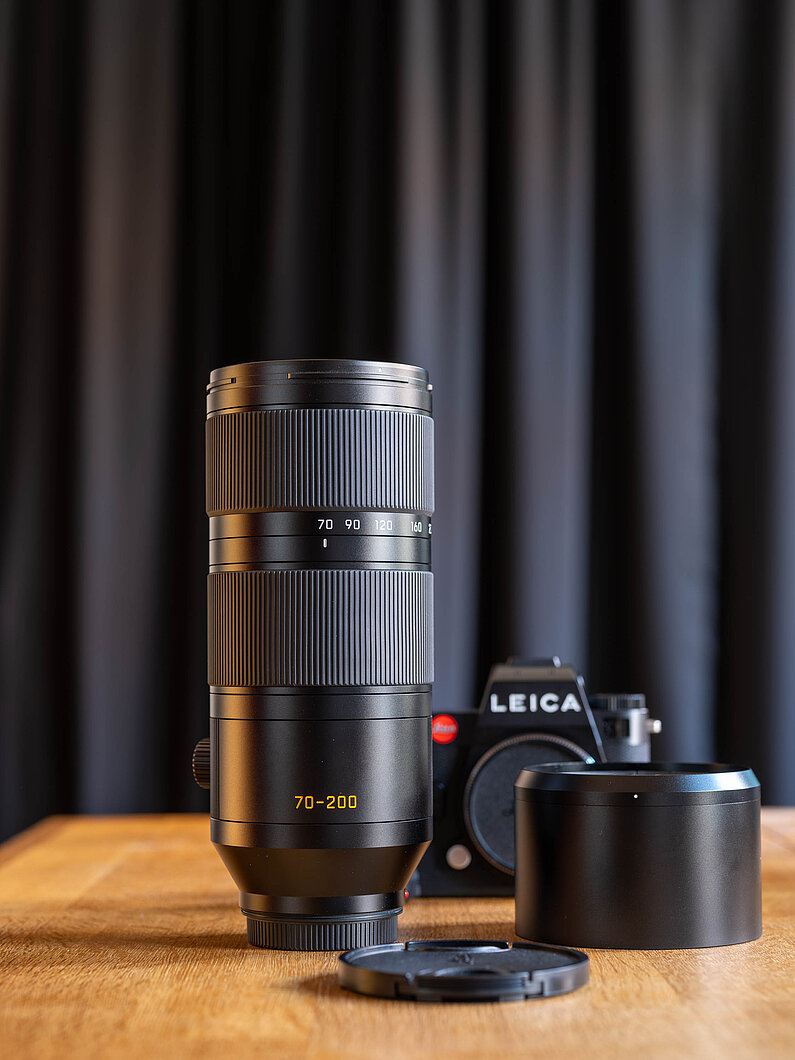 Beim Zoom des LEICA VARIO-ELMARIT-SL 1:2,8 /70-200 handelt es sich nicht wie beim LEICA VARIO-ELMARIT-SL 1:5-6,3 /100-400 um ein Zoom mit variabler Länge. Das LEICA VARIO-ELMARIT-SL 1:2,8 /70-200 bleibt in jeder Brennweite gleich lang. Das hat den Vorteil, dass beim Zoomen kein Vakuum im Objektiv entsteht, in das kleinste Staubpartikel eindringen könnten. Außerdem rutscht das Objektiv beim Tragen am Original-Kameragurt nicht in die Länge, wie es beim Objektiv 100-400 der Fall ist.