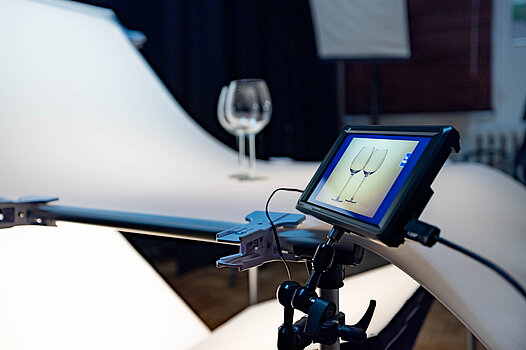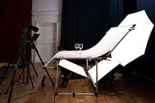 Bei Objekten bis 15 Kg und einer Größe von 50 x 50 x 50 cm ist die Fotografie auf dem durchleuchtetem Fototisch möglich. Bei größeren und schwereren Objekten kann ein weißer Karton als Untergrund und Hintergrund genutzt werden.